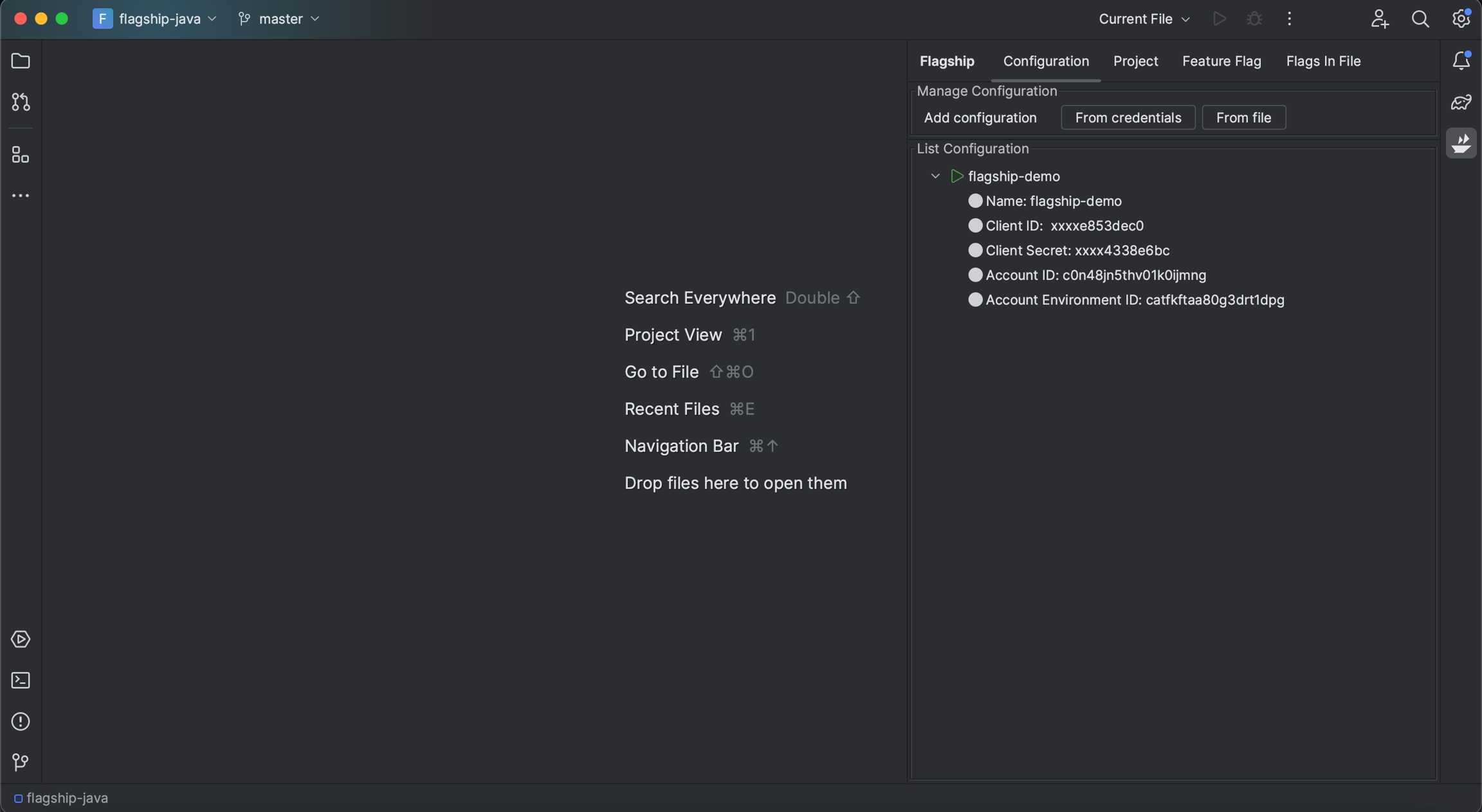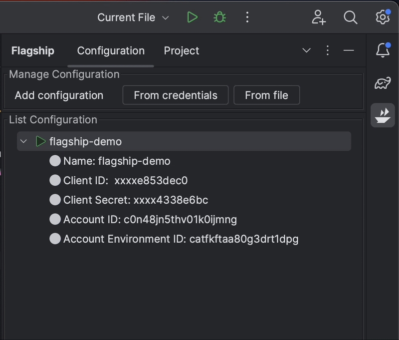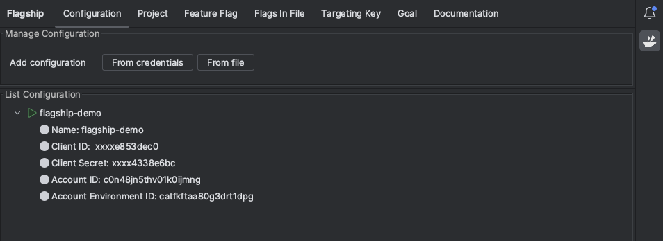 The configuration feature lets you manage multiple flagship accounts and environments and easily switch between them.